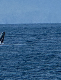 Ballena, the spanish word for whale, in this case a grey whale. The word comes from the latin Bālena. Humpback whale are fliter feeders dependant on baleen filtering system.