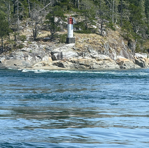 This rock is at the mid chanel of the entrance to Blind Channel, not the white water caused by the water flowing rapidly around the rock.
