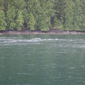 Our trip from Squirrel Cove started out plesant enough but the skies looked ominous. Most of the travel from Squirrel Cove was in beautifully clear weather navigating through spectacular vistas. The rain started as we neared Dent Rapids and continued as we approched the first rapid and whirlpools. We were being led by the slowest boat, by one of the boaters with the great experience and were able to safely navigate the rapids.